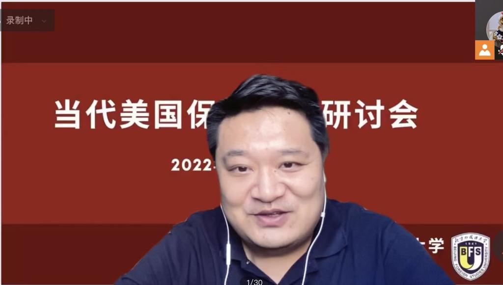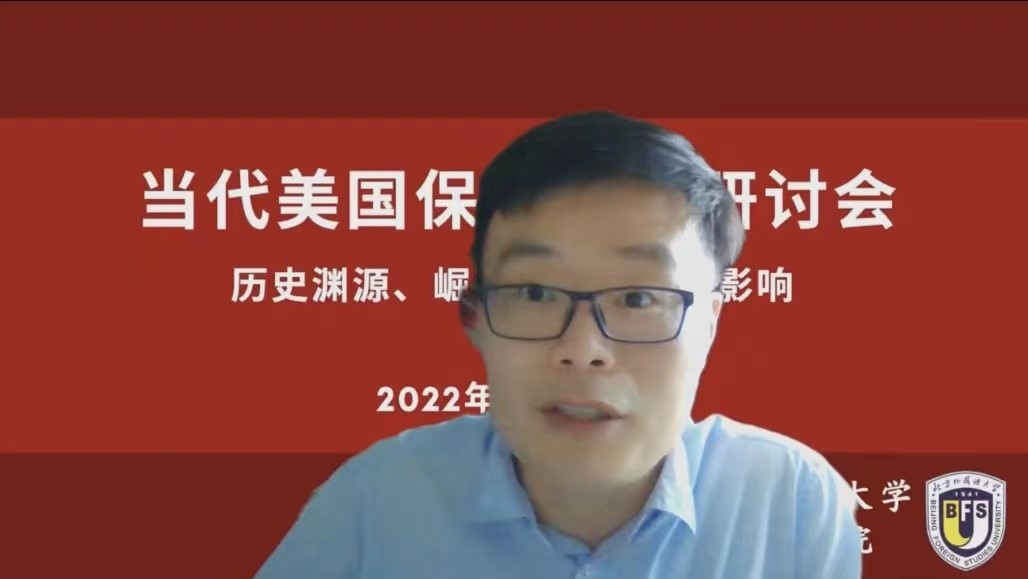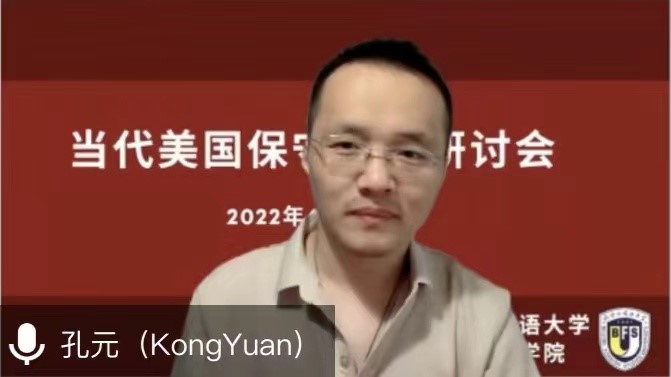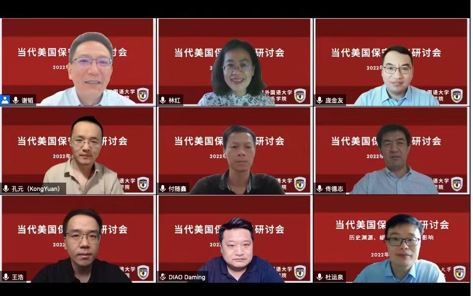 2022年6月24日上午,由北京外国语大学国际关系学院主办的“当代美国保守主义:历史渊源、崛起路径、现实影响”研讨会在线上召开。来自北京外国语大学、中国人民大学、清华大学、天津师范大学、复旦大学、中国政法大学、中国社会科学院、上海社会科学界联合会《探索与争鸣》编辑部等院校和单位的10位专家出席研讨会。与会专家学者就美国保守主义的历史脉络和发展现状等议题进行了深入探讨。