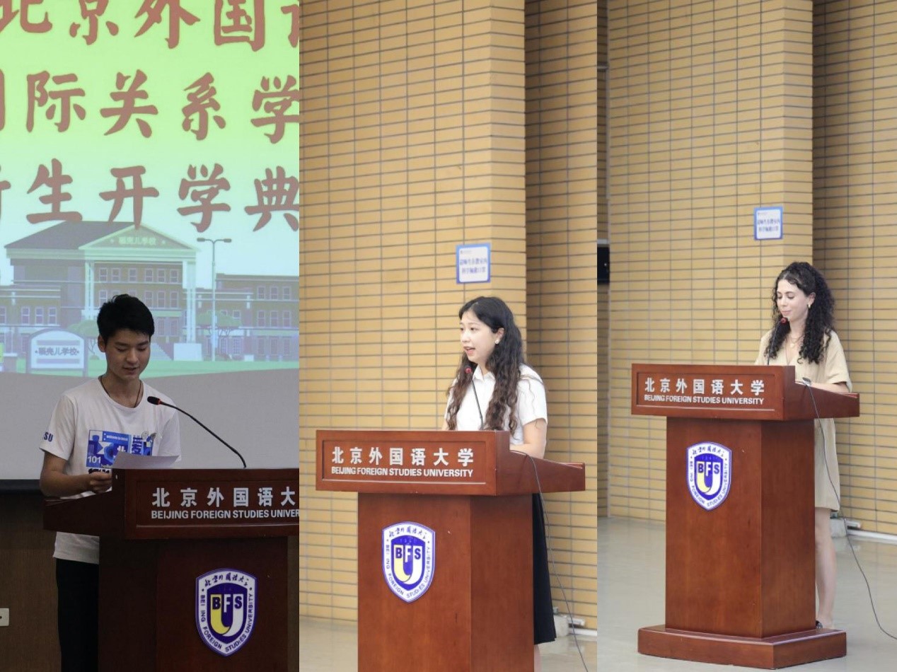 2022年9月3日下午,北京外国语大学国际关系学院在逸夫楼第三阶梯教室举行了2022级新生开学典礼。国际关系学院全体教职工以及22级全体在校本科生、研究生与留学生新生参加了本次活动,由于疫情原因未能返校的新生在线上通过腾讯会议的方式观看了开学典礼的直播。开学典礼由党总支副书记彭澍主持。