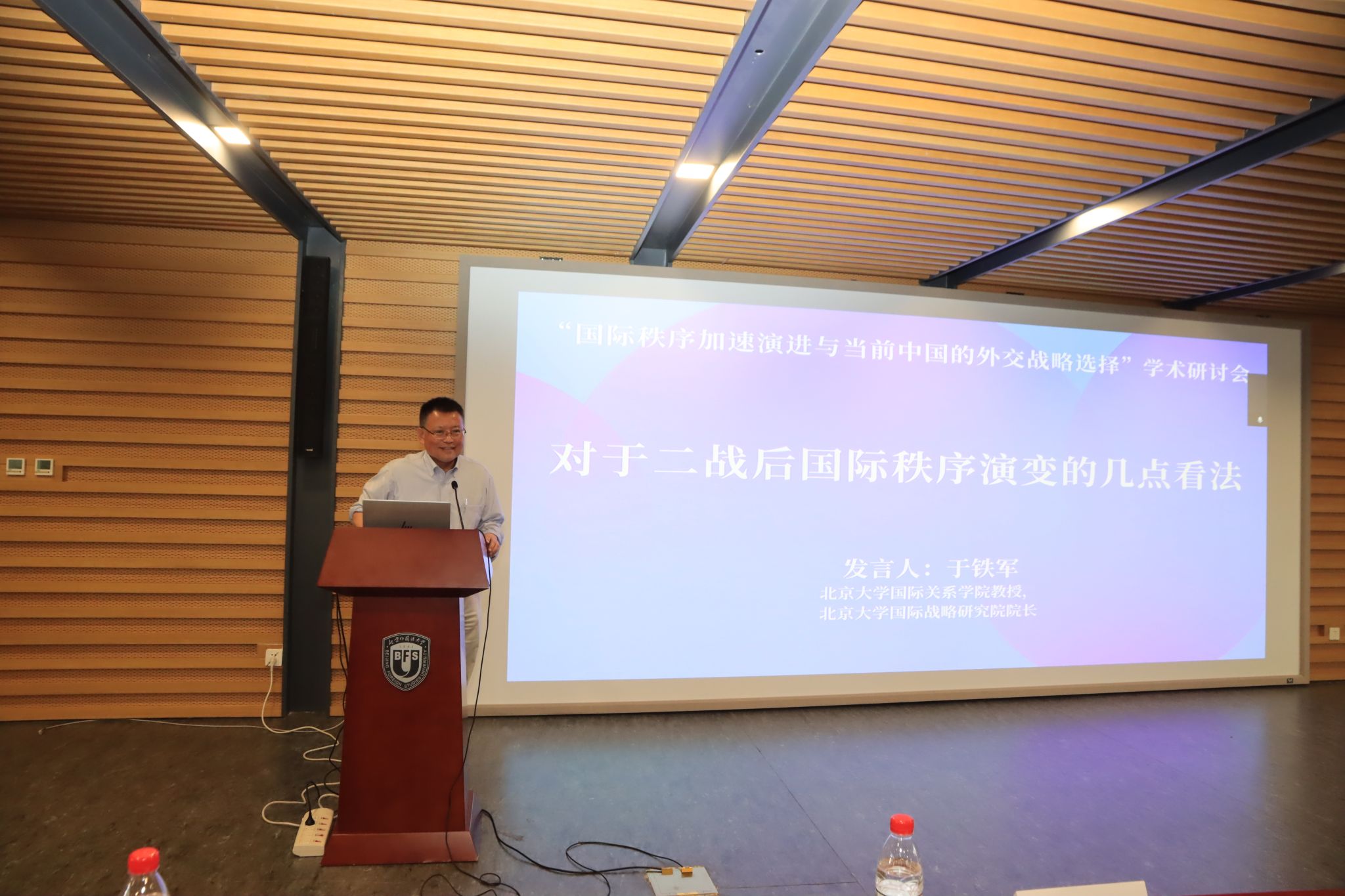 主题研讨第二时段由北外国际关系学院学术委员会主任王明进教授主持。中国人民大学国际关系学院金灿荣教授做题为“在国际秩序加速演变中确定中国的外交战略”的精彩演讲;北外区域国别研究院崔洪建教授以“自主力量还是大国博弈竞技场——欧洲在国际秩序演进中的角色、应对及前景”为题做主旨发言;北外区域与全球治理高等研究院、复旦大学国际问题研究院任晓教授讲述“战后80周年之际美国在塑造国际秩序中的角色与中国的外交战略选择”;北京外国语大学国际关系学院院长谢韬教授概括分析了后特朗普时代的美国和美国研究。
