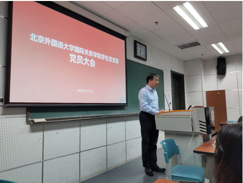 6月6日晚6点,北京外国语大学国际关系学院学生党支部党员大会在北外国际大厦331教室顺利召开,会议讨论了关于接收张珂璇、汪晨、董星柔、夏福渭、孙亚文、季洋阳6位同志为中共预备党员的相关事宜。国际关系学院党总支书记张效民老师出席了会议,学生党支部副书记习曼洁主持了本次会议。