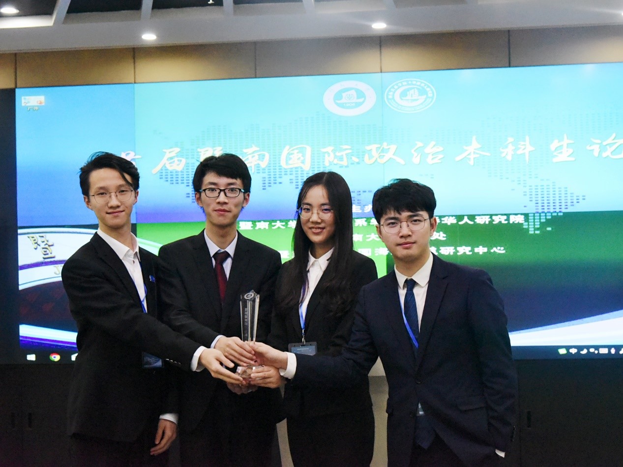 12月14日,首届暨南(全国)国际政治本科生论坛在广州暨南大学举办。本次论坛由暨南大学与教育部高等学校政治学类专业教学指导委员会共同举办,论坛主题为“领事保护的国际比较”。经审核选拔,我院由2017级外交学专业本科生韦云杰担任领队,2017级外交学专业本科生李昕沂、张谦和,2017级政治学与行政学专业本科生潘天一共4名同学参加了本次论坛,参会论文由张效民副教授指导完成。