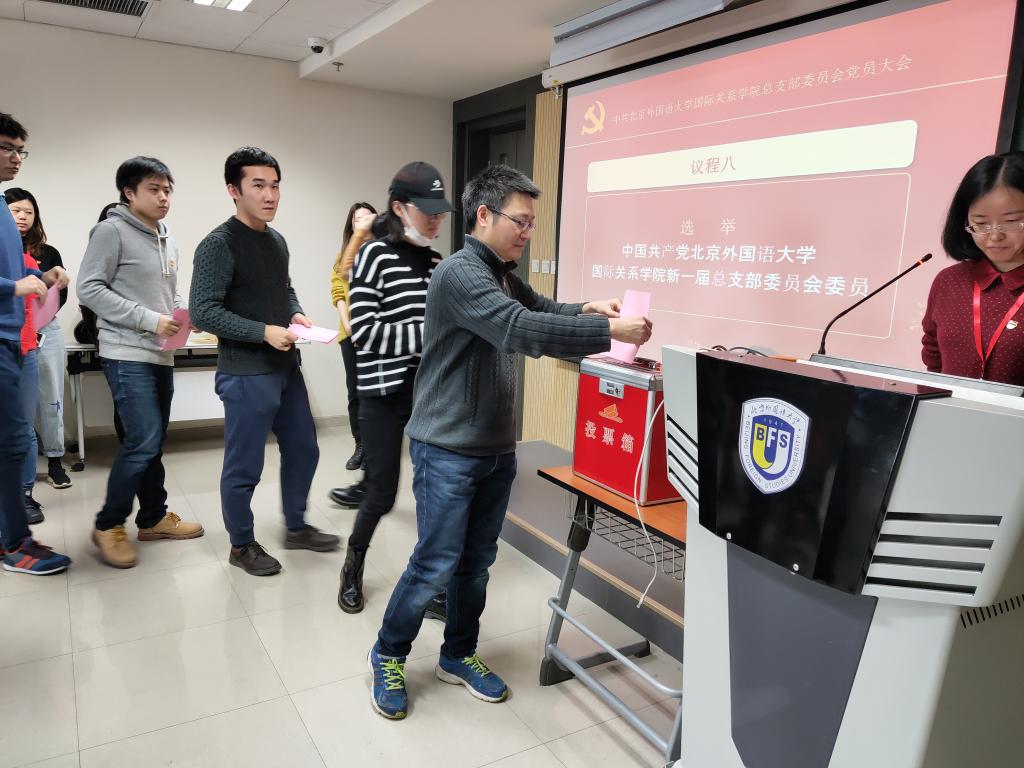 根据《中国共产党章程》、《中国共产党普通高等学校基层组织工作条例》和北京外国语大学党委工作部署,12月25日上午,国际关系学院党总支在召开换届选举党员大会,选举产生新一届党总支委员会委员。北京外国语大学纪委正处级纪检员李正玉同志出席会议指导选举工作。本次大会共有55名党员参会,会议由杨毅主持。