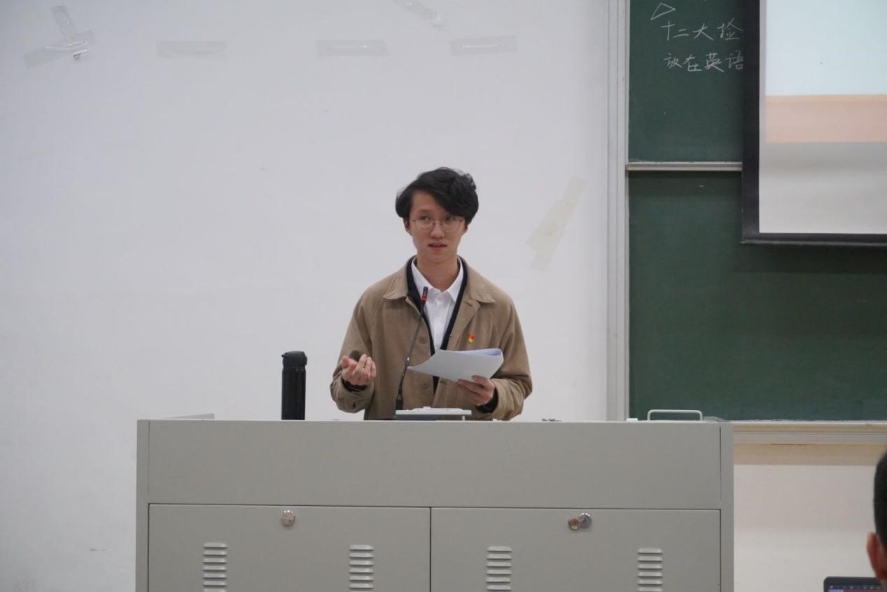 本次活动由国关团总支副书记19级姚佳雨同学主持。会议伊始,她阐述了学习党史与新中国史的重要意义:认真学习“四史”,传承弘扬伟大的革命精神,对于培育和践行社会主义核心价值观具有深远意义。接着,她介绍了本次活动的宣讲人:来自17级的优秀学长韦云杰和潘天一同学。他们向全体20级新生进行了精彩的宣讲。