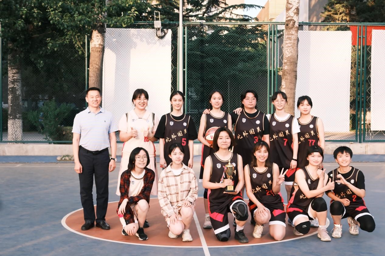 2023年6月2日17时,“北外杯”女子篮球决赛在东校区篮球场举行。自开赛以来,国际关系学院女子篮球队全战全胜,以小组第一的成绩晋级淘汰赛后,连克劲旅法语女篮和法学女篮,最终迎战国商信科女子篮球队。赛前,国关女篮做了充分的准备与针对性的训练。比赛当天,国关女篮五名主力队员张淇昱、彭慧、周骧驰、蔡嘉琪和唐思佳为首发阵容,面对上届冠军国商信科女篮,队员们毫不畏惧,上半场对手频频施加进攻压力,我方迅速心态,组织防守,紧紧咬住比分。下半场比赛我方逐渐适应比赛节奏,将主导权掌握在自己手中,逐渐扩大比分优势。最终,国关女篮凭借过硬的实力与默契的配合,将决赛比分锁定在25:19,取得了2023年北外杯女子篮球赛的冠军。自此,“北外杯”女篮赛完美收官,场上球员的奋力拼搏与场下同学、老师们的呐喊助威共同助力国关女篮摘得桂冠。在大家的努力下,国关女篮这支队伍也开启了新的篇章。