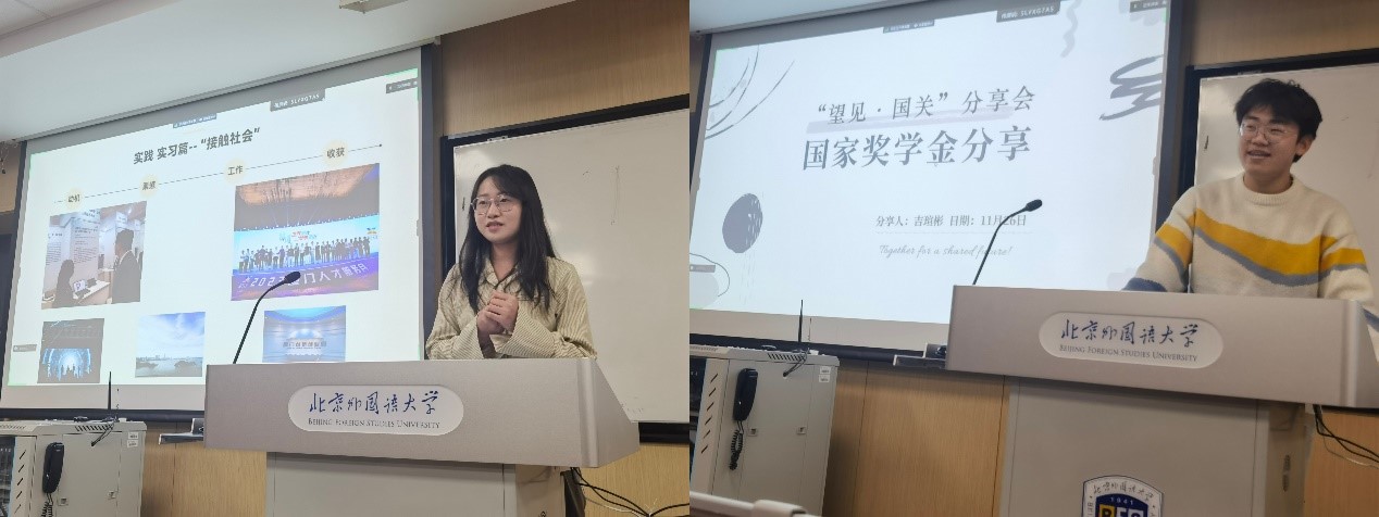2023年11月26日下午,国际关系学院团总支学生会于北京外国语大学逸夫楼302教室成功举办“望见·国关”朋辈分享会。本次分享会由团总支学生会轮值主席吉瑄彬主持,优秀的国关学子们为同学们分享了学习工作经验、备考建议与思考感悟。